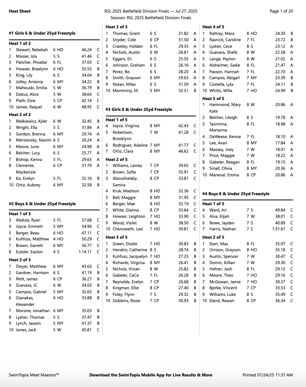 Non-Refundable RSL Fee per swimmer...............$20